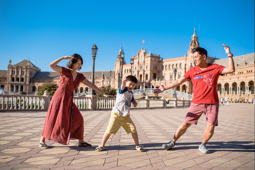 Un inolvidable álbum familiar con fotos espontáneas visitando monumentos y descubriendo la ciudad.